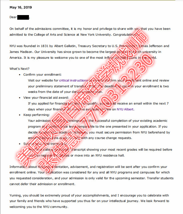 NYU: 申请截止2019.4.1,2019. 4.1递交申请,2019.5.16收到录取