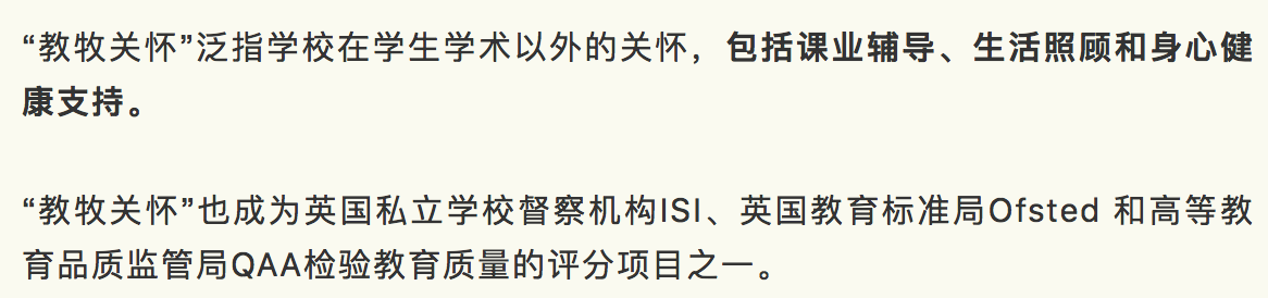 哈罗公学前校长、英国私立学校委员会主席Barnaby Lenon曾表示:私立学校无微不至的教牧关怀(Pastoral Care)是判断一所学校好坏的重要标准。