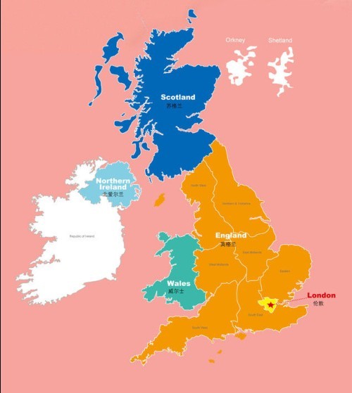 英国,全称大不列颠及北爱尔兰联合王国( The Unite Kingom of Great Britain an Northern Irelan),本土位于欧洲大陆西北面的不列颠群岛,被北海、英吉利海峡、凯尔特海、爱尔兰海和大西洋包围。其是由 大不列颠岛上的英格兰、威尔士和苏格兰,爱尔兰岛东北部的北爱尔兰 以及一系列附属岛屿共同组成的一个西欧岛国。