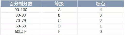 当算GPA时,A 4.0,B 3.0,C 2.0,D 1.0,F 0.0,最后的GPA往往保留一到两位小数。比如:3.5,3.54。