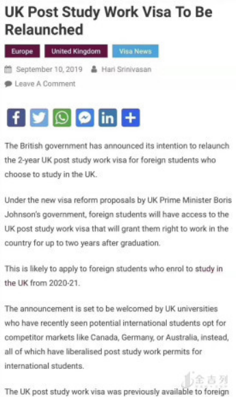 这意味着,2020年入学的留英学生有望成为PSW新政的第一批受益者。