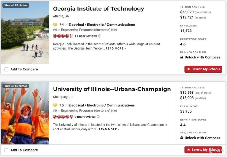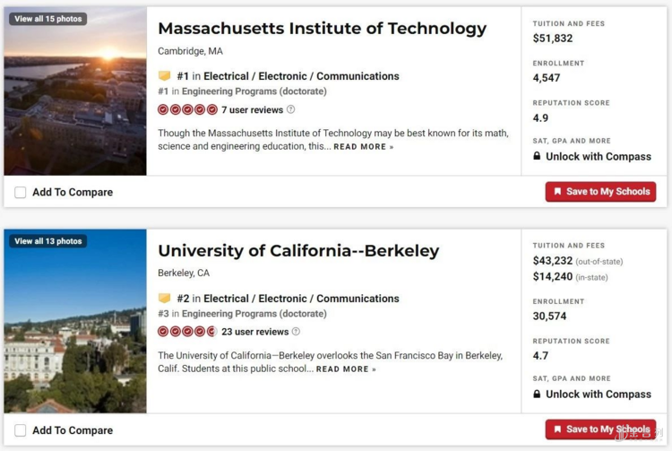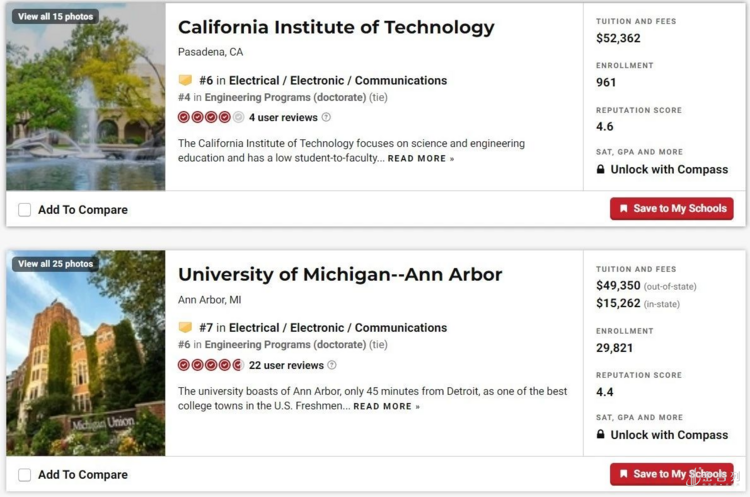U.S.NEWS 电子工程专业TOP10▶▶▶