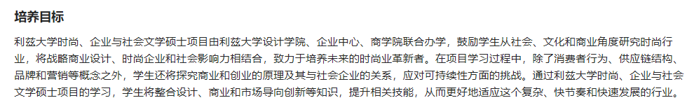 课程名称:Fashion, Enterprise an Society MA 时尚潮流,公司和社会学研究生