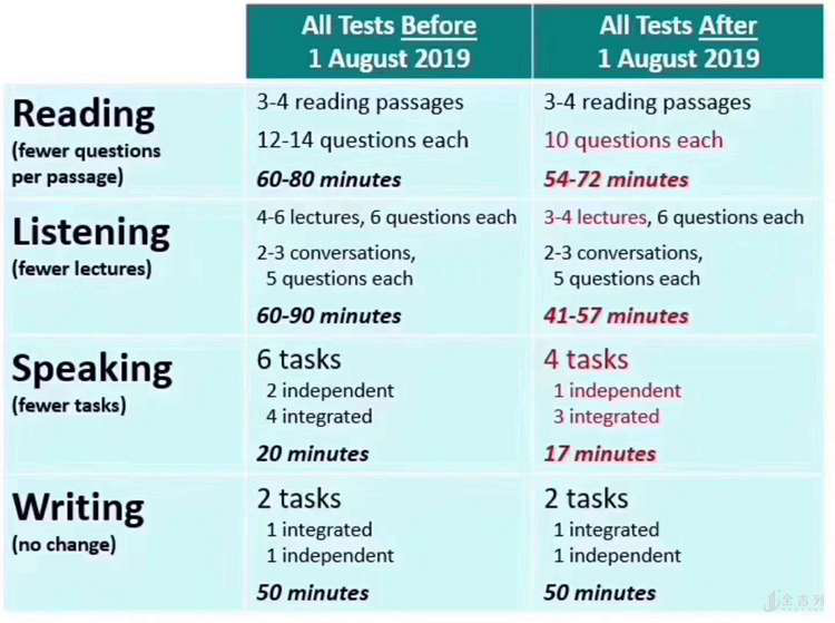 8 月 1 号开始,托福考试时长由 3.5 小时减少到 3 小时