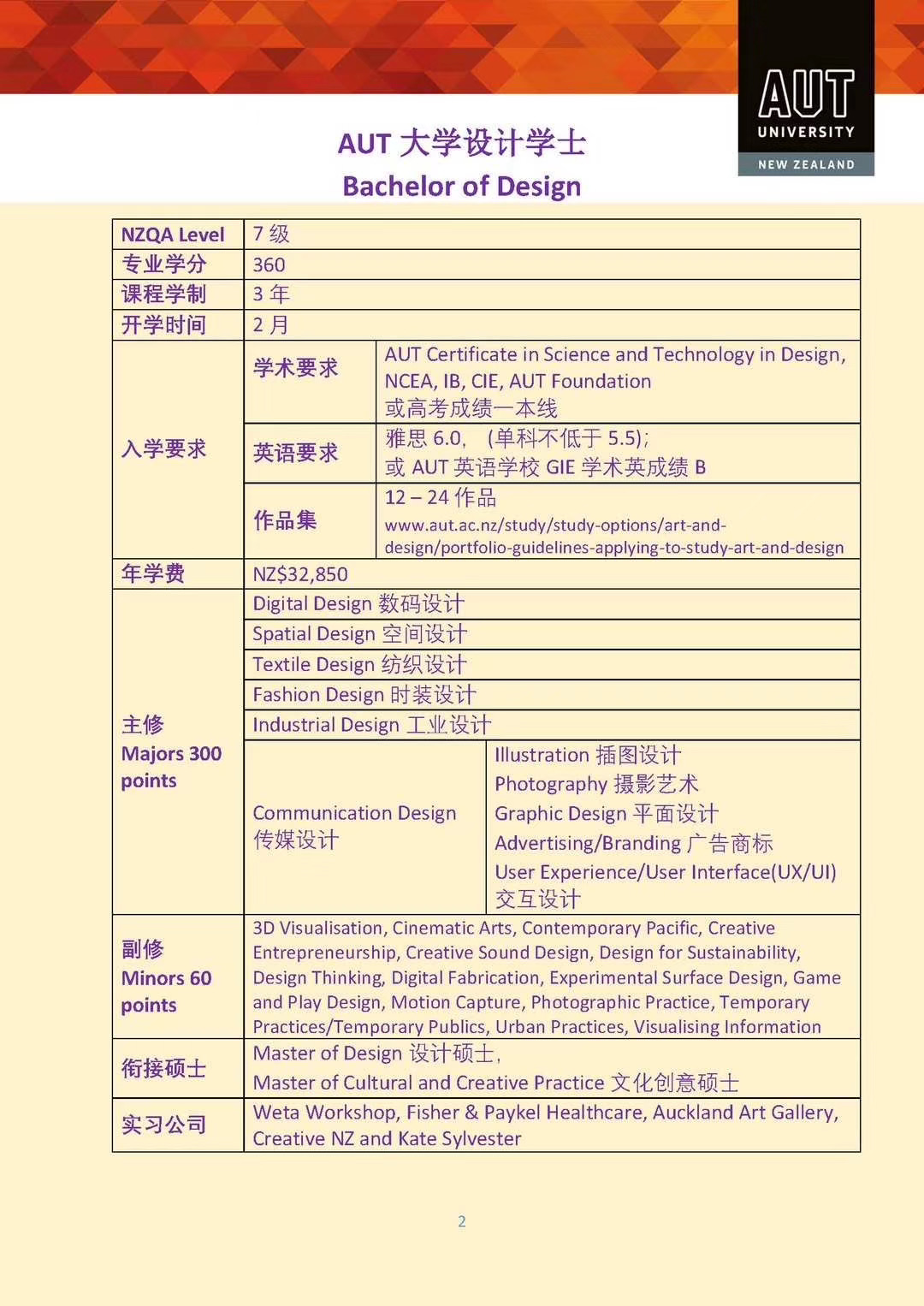 二、AUT 设计专业课程