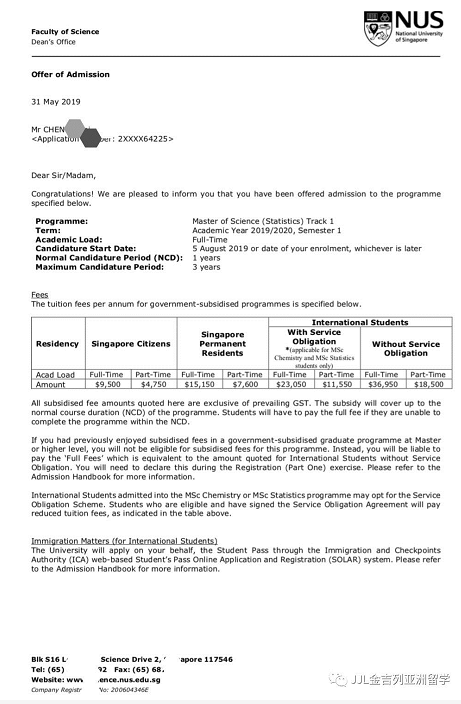 录取专业:国立大学 Master of Science (Statistics)统计学