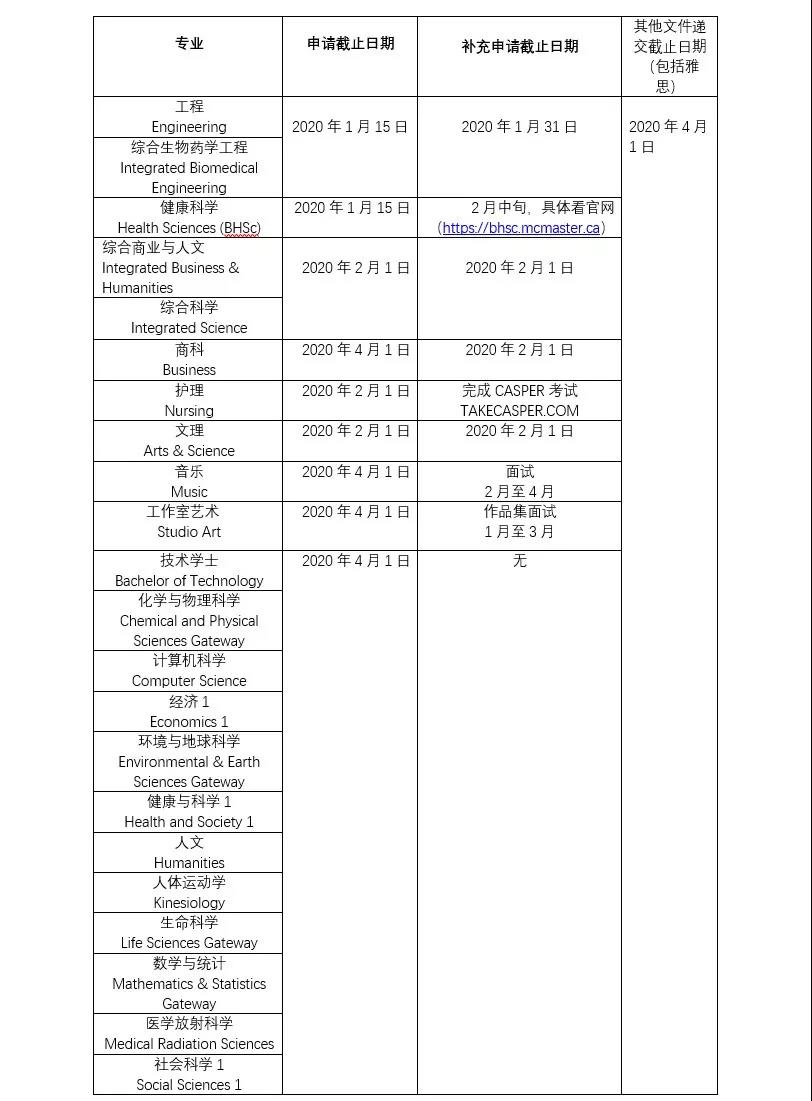 滑铁卢大学的工程(包括建筑)、药学、数学(包括计算机科学)、会计与金融管理专业接受OUAC申请的截止时间为2020年1月31日,其他专业的申请截止日期为2020年3月27日。