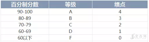 当算GPA时,A 4.0,B 3.0,C 2.0,D 1.0,F 0.0,最后的GPA往往保留一到两位小数。比如:3.5,3.54。