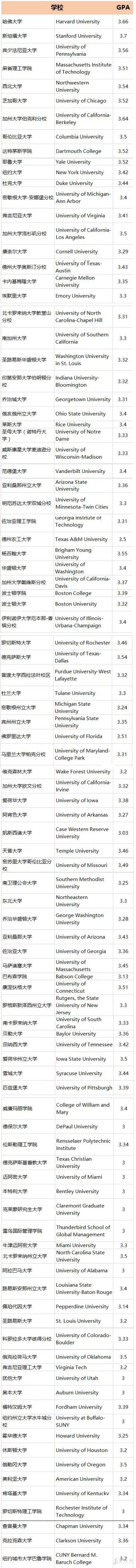 不同排名的美国大学,对应的GPA成绩要求不同。