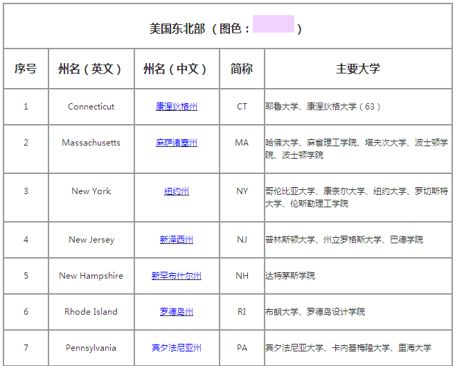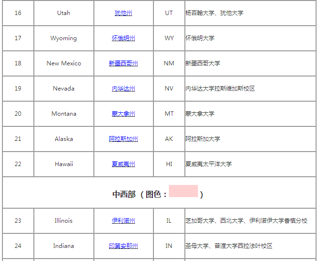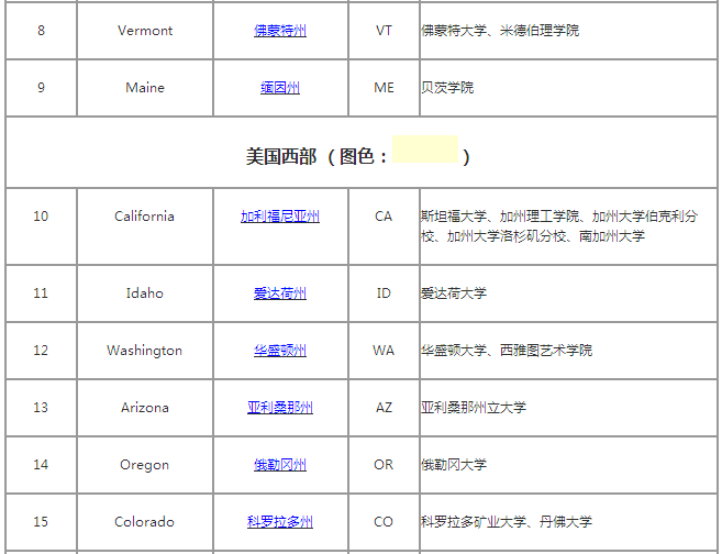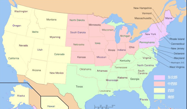 美国大学分布地图是很多学生都会提到的问题,由于图片大小有限,美国大学又多,在地图上标注出大学名称,也不太现实。以下我们把美国分为四大区域,东北部、西部、中西部、南部。并将这四个地域用不同颜色标示出,并总结美国地域的州、主要大学,更方便学生查找。