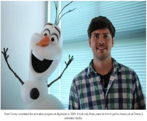 • Trent Correy ,加拿大人, 2009 年毕业于亚岗昆学院动漫专业 •同年加入渥太华 Mercury Filmworks 工作,负责深受小朋友喜爱的 Toot & Pule , The Doolebops 及 Kick Buttowski 的动画创作,电视节目制作以及游戏人物创作等工作 • 2012 年在 1200 多个申请人中脱颖而出,成功加入迪斯尼公司。成功作品:冰雪奇缘( Frozen )中可爱的小雪人 Olaf ;超能陆战队( Big Hero 6 )大白;疯狂动物城主要创作人