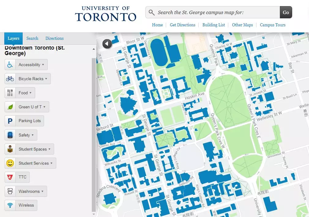 手机电脑都能下载,有了地图和 app 生活超级方便,妈妈再也不用担心我会迷路了。点击一个按钮,就能找到吃饭,学习的地方,洗手间,学生服务中心都能找到,逛校园就跟自己家后花园似的, so easy