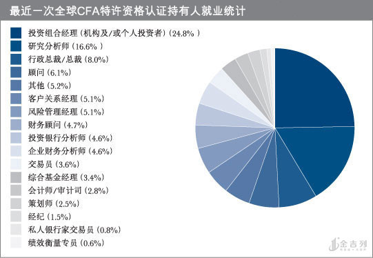 CFA特许分析师仅授予某些类型的专业人员,包括货币经理、证券分析师、投资顾问等,它要求候选人掌握严格而广泛的课程知识,包括与投资有关的各个领域,如资产估值,投资组合管理和资产配置。之后,候选人必须通过三级考试来展示他们将这种知识应用于实际操作中的能力。