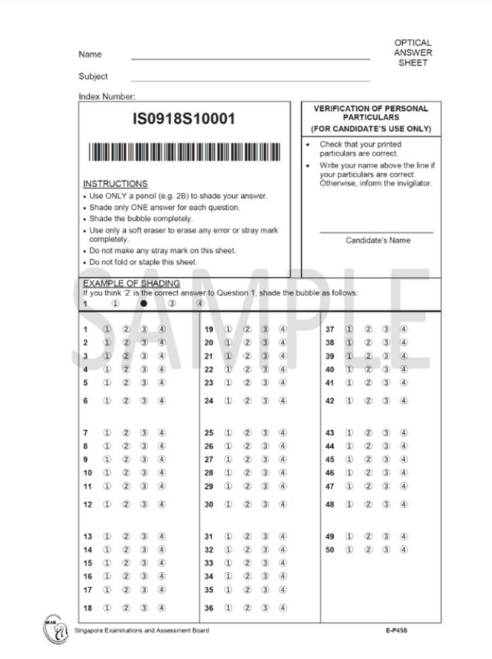 b) 对于单项选择题,考生需要用2B铅笔在答题卡上将所选答案涂黑。答题卡会和试卷一起发放给考生。考生必须在答题卡上写上自己的姓名和准考证号。