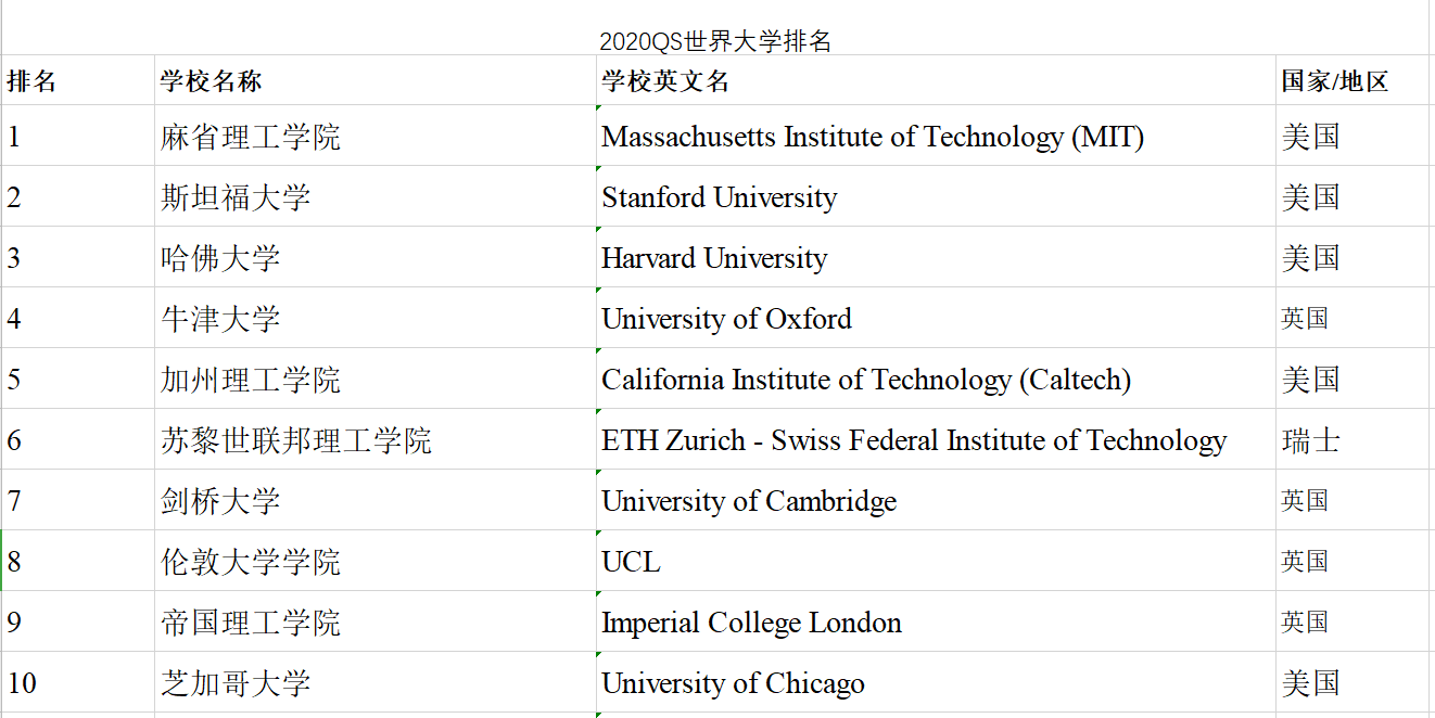 在QS 2020年世界大学排名TOP10中,英美院校包揽9个。其中最著名的是,美国的常春藤盟校(Ivy League,包括哈佛大学、耶鲁大学、普林斯顿大学和东海岸的其他几所大学)以及英国的牛剑(Oxbrige,牛津大学和剑桥大学的统称)。