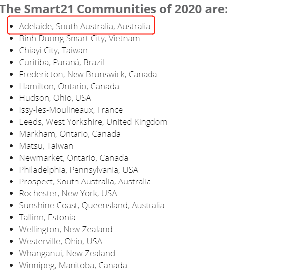 近日,智慧社区论坛(ICF)的“Smart 21”排名新鲜出炉,阿德莱德毫无悬念地在其中赢得一席之地。