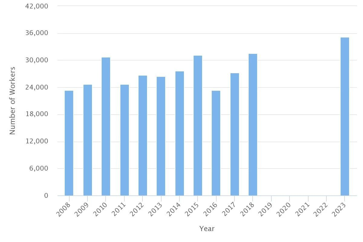 就业展望: 从2018年的31,600人增加到2023 年的35,200人,并为澳大利亚创造约17,000个新工作(每年约3,400个),92%为全职工作(高于平均的66%)。
