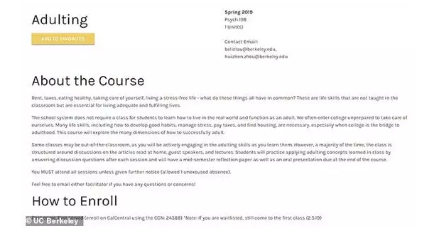 因此,在与学校协商之后,学院决定开设一门叫做“Aulting”的课程,来提高学生的自立能力。 主要教授学生们如何做饭,缝纫,报税等生活技能,如何进行时间、个人健康、人际关系的管理,以及怎么在独自生活的情况下有效地把控预算等等。