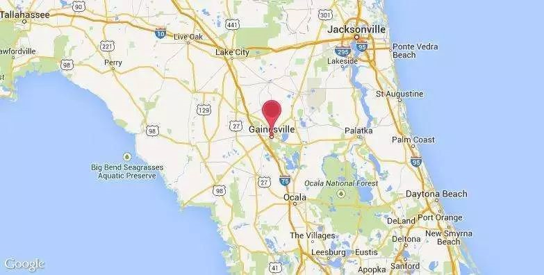 盖恩斯维尔(Gainesville),位处佛罗里达北方Alachua县,是一座以佛罗里达大学为中心而发展成的城市,也是该县县城,拥有近12万人口,规模不算大却是佛罗里达州的教育、医学、文化中心之一。盖恩斯维尔市曾获得美国「钱杂志」(Money Magazine)评为全美最宜人居的城市。这个地区气候温和,遍布公园绿地,道路两旁树荫绵延,让人置身于「都市森林」,加上得天独厚的自然资源,拥有美丽的湖泊及温泉,著实是户外活动的天堂。关于其它的文化及娱乐活动,由于与历史悠久的佛罗里达大学为邻,盖恩斯维尔市有著浓厚的文化气息。拥有为数不少的博物馆、戏院、高尔夫球场与艺术表演中心等设施,附近的自然历史博物馆(Floria Museum of Natural History)更是全美十大自然历史博物馆之一。