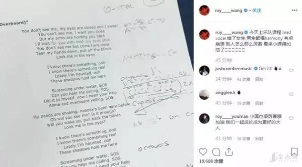 9月19日,远赴美国留学的在个人社交网晒出满是笔记的课上作业图,并配文:“在今天上乐队课程,lea vocal(主唱)给了女生,男生都唱harmony(和声),有点崩溃,别人怎么那么厉害,看来小源得加油了!”此动态一出,网友纷纷留言为其加油打气。