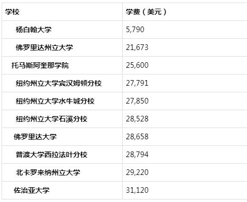 排名靠前的公立学校的州内和州外学费平均价格均上涨了4%,私立大学的平均学费上涨了3%。