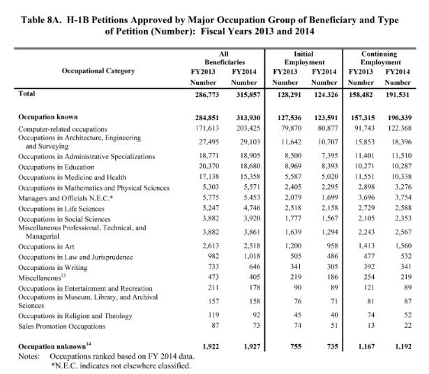 二是因为大多数的国家对于留学生留下就业的政策不是那么友好,比如英国。美国可以说是留学生就业政策不错的国家了,但是我们来 看一下成功申请到H1-B的申请者专业背景统计的官方数据: