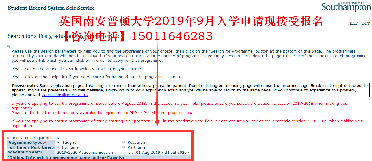 南安普顿大学的研究生课程 2019 年 9 月入学申请现已接受报名,以下附上学校官网的申请通道截图: