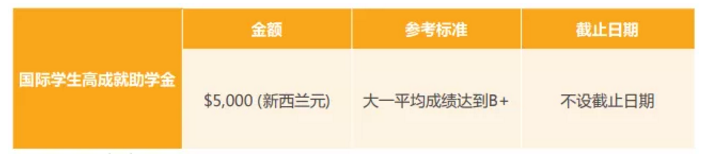 圆满完成大学本科大一课程内容且均值考试成绩超过B+或左右,提前准备升上大二的国际性学员可得到$5,000(新西兰元)助学金。