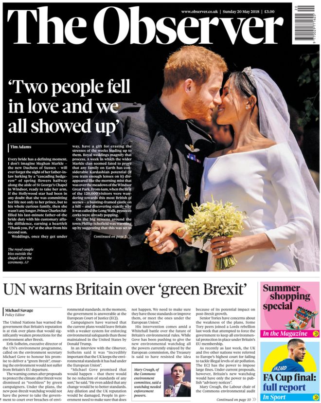 对于《星期日镜报》来说,这是一个非同寻常的联盟,几年前似乎是不可能的:哈里王子——女王的外孙——嫁给了一位离异的美国混血女演员,她出身于非洲奴隶,有着名人的形象和强烈的女权主义的声音。它说,公爵夫人将帮助重建一个现代多种族的英国的君主制。用“我”报纸的话说——出版了一个特别的周日版——两个世界相撞,然后拥抱。