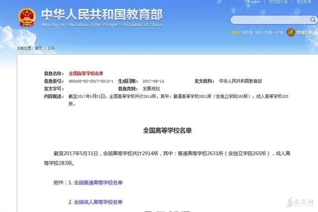 请登录中华人民共和国教育部官方网站,搜索“全国高等学校名单”,截止截至2017年5月31日,全国高等学校共计2914所,其中普通高等学校2631所(含独立学院265所),成人高等学校283所。简而言之,教育部《全国高等学校名单》上有名的,即正式大学,包括有办学资质、办学场地、师资力量、国家招生计划等,水平、层次会有一定差别,但是均为教育部认可的大学。