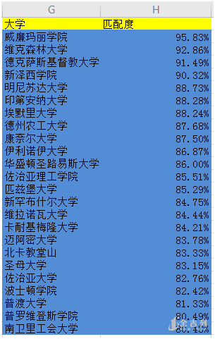 通过排名看到,其实商科项目就业前景比我们想象的好一点,有 21 所学校就业率超过 90% , 32 所超过 85% (去年超过 90% 的有 27 所,超过 85% 的有 29 所),其中康奈尔和北卡教堂山就业率达到 100% 。另外,威廉 & 玛丽学院、维克森林大学、德克萨斯基督教大学、新泽西学院的毕业生职业匹配度都超过 90% 。