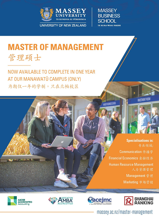 好消息!梅西大学北帕校区现开放管理学硕士一年制项目申请!仅需一年即可完成管理学硕士课程,只在梅西大学北帕校区哦!共有五大专业可供选择哦:传播学、金融经济、人力资源管理、管理学和市场营销。 还不快来申请!