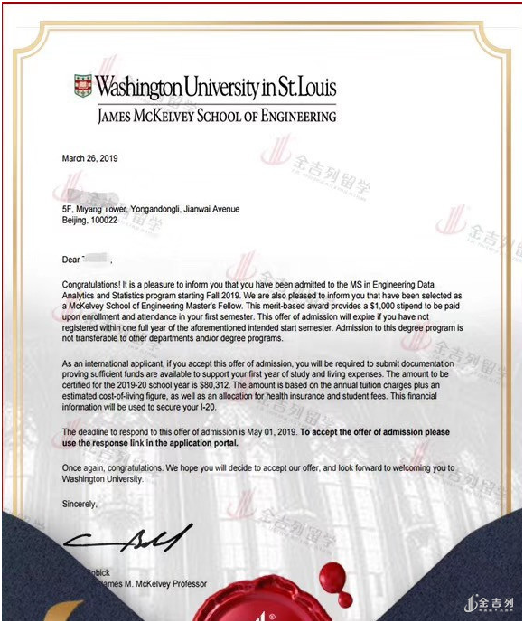录取院校 : Washington University in St.Louis 圣路易斯华盛顿大学