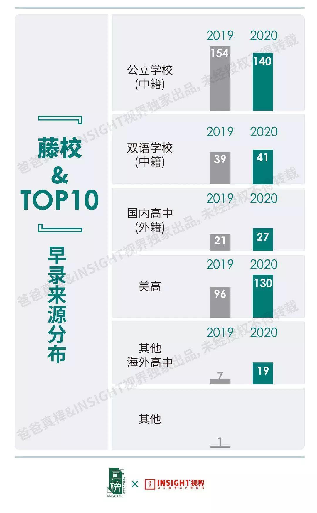 反观海外高中数据,2019年列入统计的海外学生数量是103位,2020年总计149位!刨除统计误差,这个变化依旧是非常明显的。