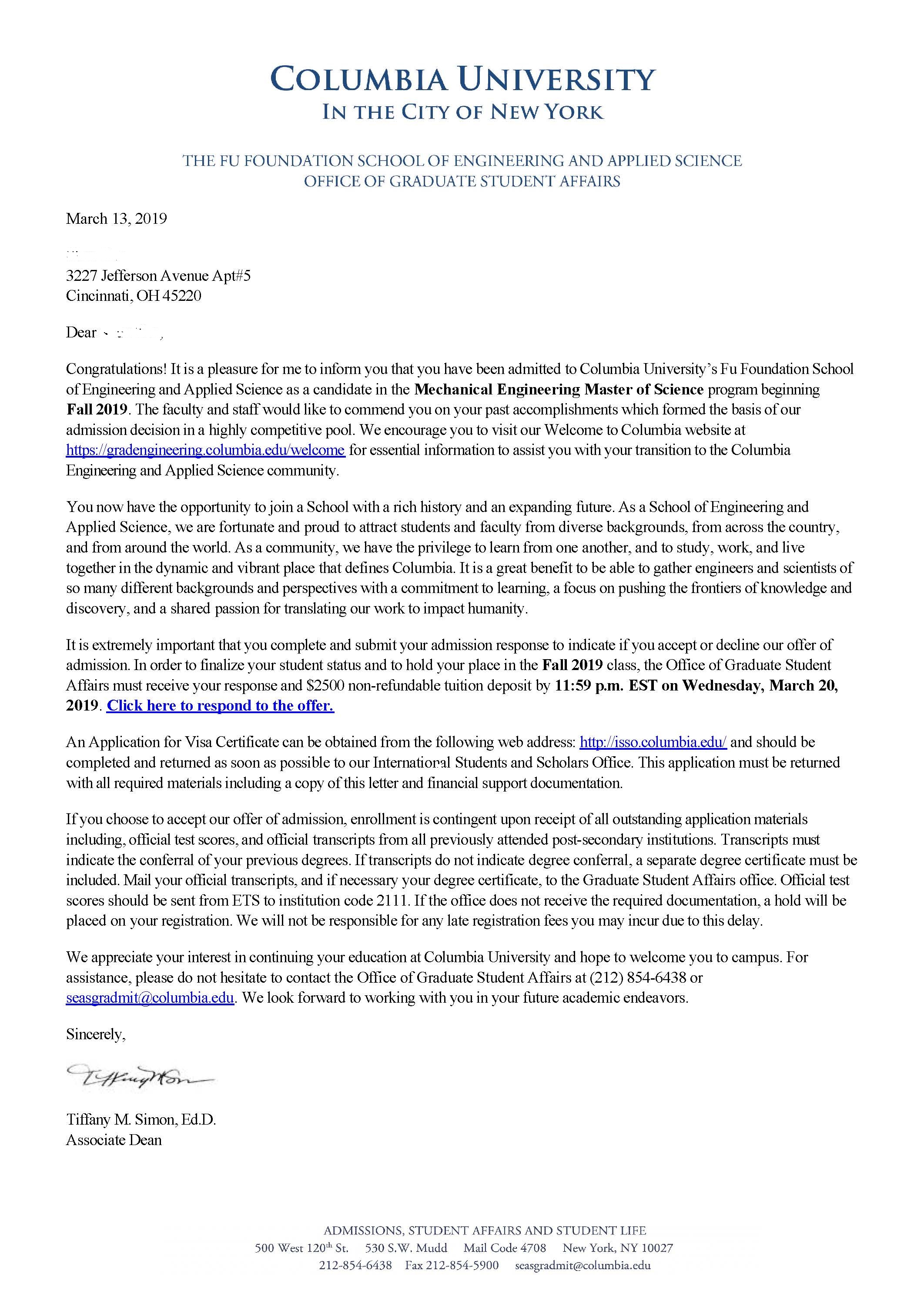 录取学校:Columbia University、Washington University in St. Louis、University of Southern California、Duke University