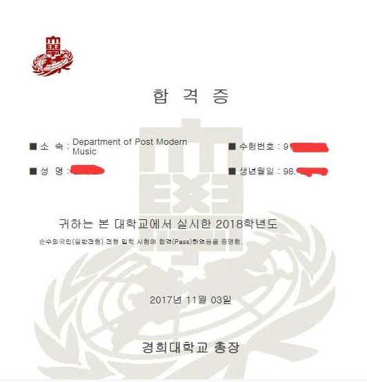 申请庆熙大学后现代音乐专业Offer展示