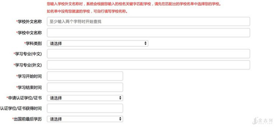 第四步是学习经历,通常补上一个高中的学历就可以到下一步了。