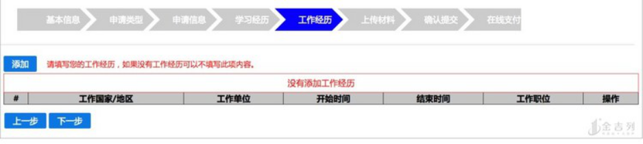 第五步是工作信息,这个并非必填选项,可以选择不填。
