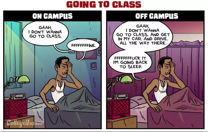 时间:距离学校越远,上课路上的时间就越长,也就意味着你能花在社交,学校,聚会上的时间越少;