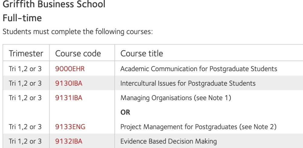 接下来,就跟着王老师来看看格里菲斯大学的专升硕课程: