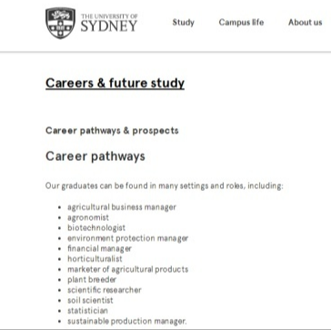 专业:Bachelor of Science an Bachelor of Avance Stuies (Agriculture)