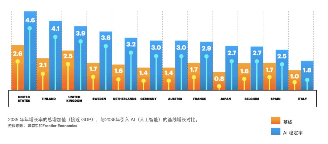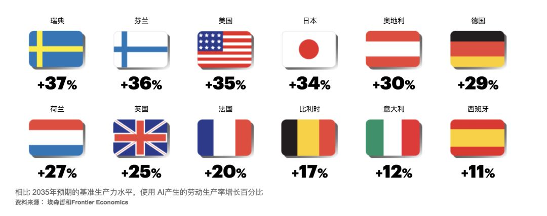 预计2035年,欧美一些国家的AI生产率增长比都将高达30%+。