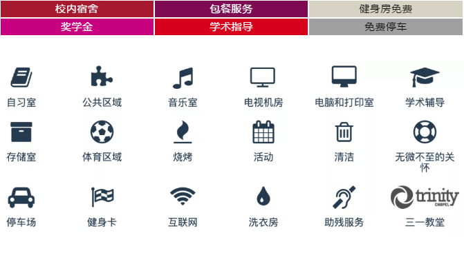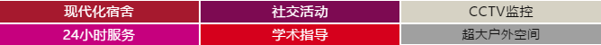 ① 学校参与管理的学生公寓(College):配有由在校学生担任的「宿舍指导员」,为住宿生提供学习、生活、健康等方面的帮助。