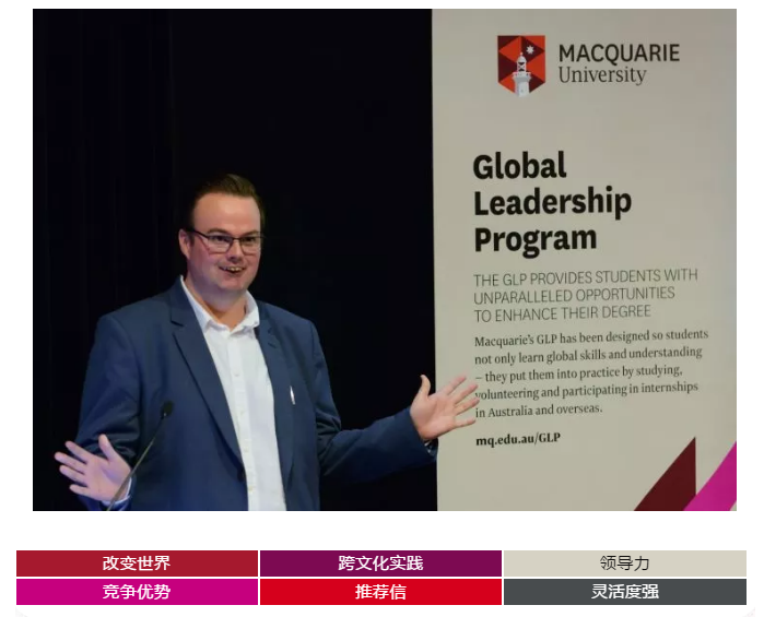全球领导力培养项目(Global Leaership Program, 简称GLP) 是麦考瑞大学为学生提供 跨文化交流 和 领导力技能 培养的实践项目。