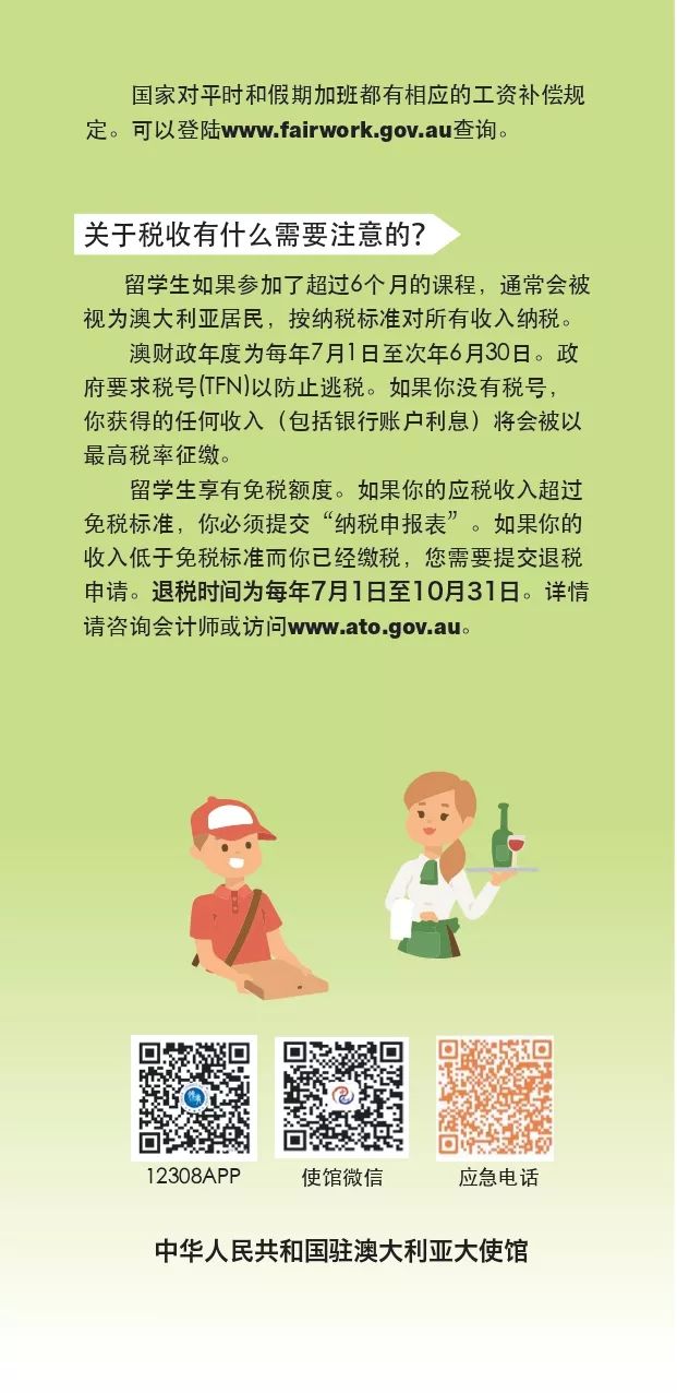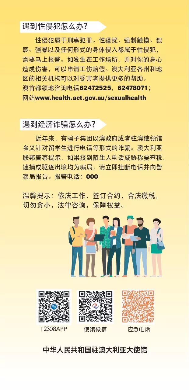 最近,中国驻澳大使馆发布了《在澳中国留学生小贴士》,这份《小贴士》涵盖了 “学生签证篇”、“学生工作篇”、“权益维护篇” 等多个方面 ,简明扼要地说明了 在澳生活想要亟待获得答案的刚需问题 。