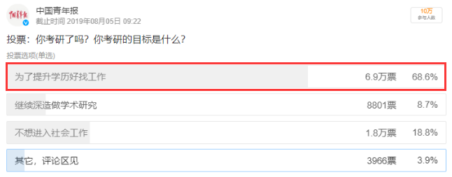 中国青年报曾经对近 2000 名各年龄段与阶层的人展开线上调查,其中 80% 的人认为学历是进入社会的基本门槛,同时也是求职招聘、评定职称、职位晋升的必要条件之一。