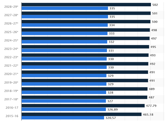 报告中还显示,根据 2014 年的预测数据,在未来的十年间,也就是到 2024年,每年都会有超过 100 万个新硕士学位,但是根据上述的增长幅度,可能到 2029 年美国的硕士学位每年都不会超过 84 万个。
