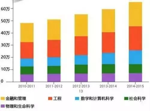 美国有成熟的 IT、化工产业,这两个领域的学生有非常多且优质的工作机会,而数学、物理等学科的学生毕业后进入金融、保险、银行、地产和制药等高薪行业的机会也很大。因为整个STEM 学生的就业状况和薪水都在平均水平以上,所以选择该领域相关专业的学生也不少。