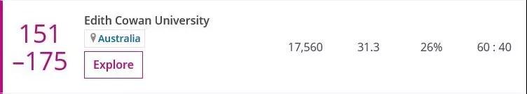 根据2020年全球认可的泰晤士报高等教育世界大学排行榜,埃迪斯科文大学的工程学院取得了历史最佳成绩——世界工程和技术学科排名前151-175位。