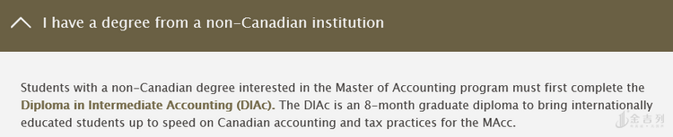 - 如果考虑在加拿大当地就业,可以适度选择加拿大文凭课程。其实有很多家长听到加拿大会计硕士就 5 个院校,第一反应是,怎么会这么少?!原因在于,其实加拿大当地很多学院和大学都快把会计专业安排在研究生文凭课程阶段,从课程的开设更针对就业导向。但是必须要提及和注意的是,中国目前来讲针对国外的文凭课程还不认可,更多的还是对于学位和学历课程的认证,因此,优先考虑毕业之后归国工作的学生,宋老师这边是不建议申请文凭课程的。